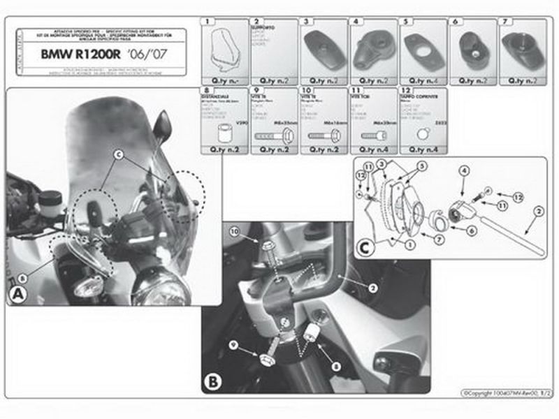 Kit di montaggio specifico per parabrezza GIVI. Necessario per il montaggio degli scudi sulla moto corrispondente. Può essere acquistato anche separatamente come kit di riparazione