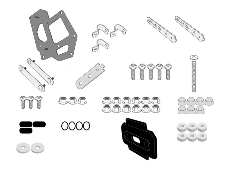 Kit specifico per il montaggio della cassetta porta attrezzi S250 sul portapacchi PL3105CAM / da montare con la S250 e il portapacchi PL3105CAM (non incluso) / da montare sul lato sinistro della moto