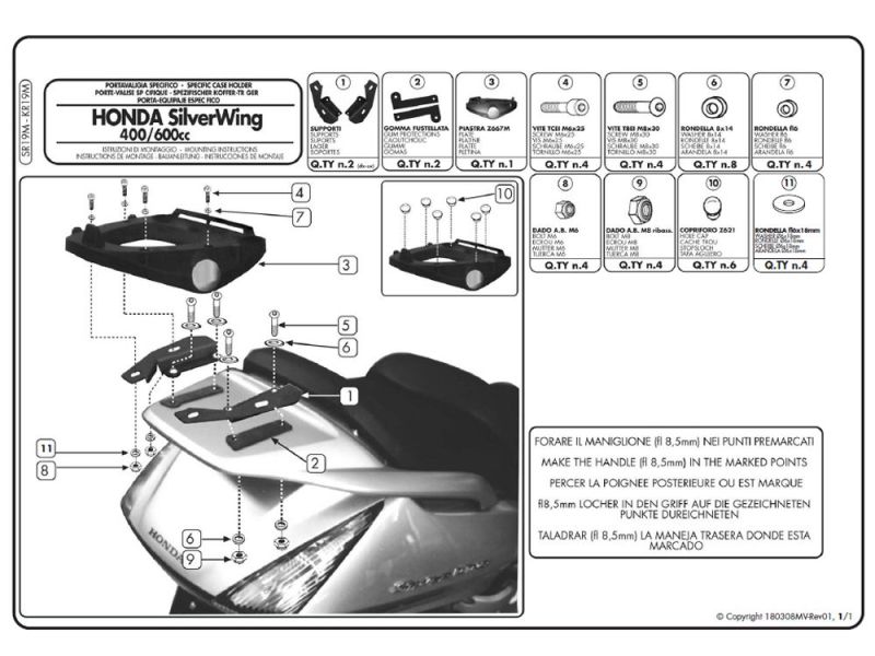 | Adatto ai seguenti veicoli | Honda SILVER WING 400 (2001-2008), Honda SW-T 400 ABS (2009-2011), Honda SILVER WING 600 (2001-2008) |